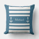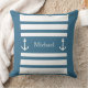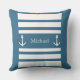 Nautical Blue and White Rand Anchor Namn Dekorativ kudde. Du kan anpassa dig genom att skriva text (namn, namn, monogram..).