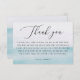 An elegant baby shower thank you card featuring a large modern calligraphy “Thank you” with block text beneath. The soft blue watercolor ombre background gives the design a fresh and gentle feel, making it perfect for a baby boy, girl, or gender neutral shower. This minimalist design is versatile, fitting beautifully with various themes such as modern Scandinavian, nautical, coastal, or beach. This thank you card is the perfect choice for expressing your appreciation to guests for their gifts and support, while maintaining a stylish and refined look that will complement the overall ambiance of your baby shower.