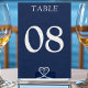 Nautiskt blått och vitt bordsnummer för bröllopsmottagning. Utformningen har också ett hjärtformade rep med ankare och initialer i monogram för bruden och trimmen. Anpassa den med dina bröllop-detaljer. Underbar för en marin (militär) eller ett sjö-hus bröllop.