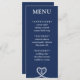 Nautisk blå och vit bröllopsmottagningsmeny. Utformningen har också ett hjärtformade rep med ankare och initialer i monogram för bruden och trimmen. Anpassa den med dina bröllop-detaljer. Underbar för en marin (militär) eller ett sjö-hus bröllop.