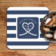 Nautical Blue Stripe Heart Anchor Bröllop Underlägg Papper Kvadrat
