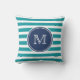 Nautical Blue Teal Rand Monogram Dekorativ kudde