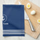 Nautical Boat Namn Anchor Rope Kitchen Towel - Navy Blue and White Rand
