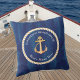 Nautical Boat Namn Anchor Rope Navy Blue Gult Kudde