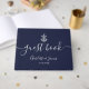 Med en frakts ankare är den här eleganten marinblått namnteckning skript gäst bok perfekt för din nautiska bröllop firande. Designad av Thisisnotme©