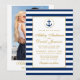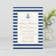 Inbjudan till Nautical Bröllop Blue Rand Guld - Guld Text - Foto back
