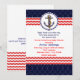 Nautical Chevron Ankare Blå Röd Inbjudningskort