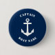 Navy Blue Classic Nautical Anchor och er Personlig Boat Namn och Anpassade Kapten Rank Button.