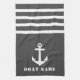 Anpassningsbar Nautical Classic Anchor med din Personlig Boat Namn på ett Grått-kökshandduk med Snyggt med White rand.