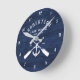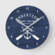 Lägg till en personlig i sjö hus eller i bergsklotet med den här rustikklockan, med ett ankare på korsade årar och en skorstenig blå träbakgrund, med familjens namn, sjö husets läge och ett fastställt datum som är enkelt att använda textmallar.
