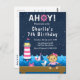 Denna söta och roliga inbjudan visar en nautisk sjöman apflicka på ett trädäck med en mås och en krabba. I bakgrunden finns en rosa och vit fyr, en söt fågel på en segelbåt, havsvågor och en marinblå stjärnklar natthimmel. Texten kombinerar feta och serif-teckensnitt för en stilren och modern look. Detta är perfekt för en nautiskt tema födelsedagsfest.