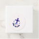 Nautical anchor and monogram framed by a lightened version of patriotic florals: white rose, blush pink peony and light blue. Preppy pink and white stripes for a summer, beach, or destination wedding event.