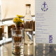 Nautical anchor and monogram framed by a lightened version of patriotic florals: white rose, blush pink peony and light blue. Preppy pink and white stripes for a summer, beach, or destination wedding event.