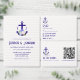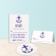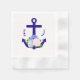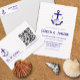 Nautical anchor and monogram framed by a lightened version of patriotic florals: white rose, blush pink peony and light blue. Preppy pink and white stripes for a summer, beach, or destination wedding event.