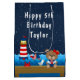 Den här söta och roligt presentpåsen kan vara personlig med namn eller titel, som dotter, barndotter, brorson, brorson, vän osv. Den har en sjömansflicka på ett trädäck med fiskmås och en krabba. I bakgrunden finns ett rött och vitt fyr, en söt fågel på en segelbåt, havets vinkarare och en marinblå stjärnkväll himlar. Texten kombinerar djärvt och seriöst typsnitt för en snyggt och ett modernt utseende.