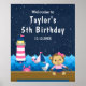 Nautical Girl Monkey Rosa Navy Birthday Välkommen Poster