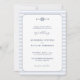 En elegant, en modern klassisk bröllopsinbjudan med ett nautiskt tema, med en enkel rundad rektangel ram över en blek dammig blå nautisk rand bakgrund, samt en enkel illustration av en nautisk oändlig knut med en rekonstruktionssymbol. Den har också monogram för par och elegant-kalligrafaccenter. Du kan anpassa den här DIY-bröllopsinbjudan till fullo. Ett underbart val för en båt bröllop, en yacht bröllop, en havsyta bröllop, en bröllop vid havet, en bröllop vid kusten eller ett badbröllop, för ett par som kärlek över havet, havet, stranden, segling osv. under sommarmånaderna och därefter.