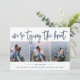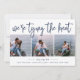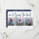 Kustens chic sparar datumkorten med tre foton placerade sida vid sida, kompletterade med "vi är gifter sig" i marinens blå handskript. Anpassa med namn, datum och plats i bröllop under.