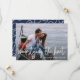 Meddela din bröllop till familj och vänner med den här kustnära chicen att spara datumkorten i den klassiska marinen blått och vitt. Designen innehåller ditt favoritfoto med "vi är gifter sig" överlagt med vitt skissat skript. Anpassa med datum för namn och bröllop och lägg till ytterligare information på baksidan, inklusive platsen och webbplatsen för bröllop, i en bakgrund av loopande nautiska rep i vitt på marinblått.