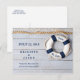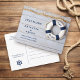Denna moderna save the date-kort är perfekt för ett bröllop med ett nautiskt tema. Den har en livbåt på en trästrukturbakgrund. Ett rep och fiskenät förstärker havskänslan. Använd denna save the date för ett strandbröllop, ett bröllop vid havet eller ett destinationbröllop. Detta kort är lätt att anpassa med bröllopsinformationen. Lägg till returadress och ett speciellt meddelande på baksidan. Detta vykort är 5,6 "x 4,25" (liggande) och är tryckt på ultra-tungt 120 lb kartong med glansigt utförande.