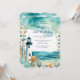 Vackert födelsedagsfest inbjudan med sjösvart och vit fyr, stjärnfisk och snäckor. Perfekt för en födelsedagsfest. Ord kan ändras till kostym med dina egna uppgifter eller krav