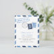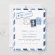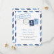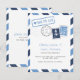 Luftpost Inspirerat Spara Datum-kort i Marinblått och Puderblått. Falskt frimärke och poststämpel för ett res- och nautiskt tema bröllop.
