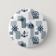 Sömlös nautisk design med segelbåt, kompass, ankare och segelhjul dekoration på blå och vit geometrisk bakgrund