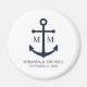 Lägg till en snyggt till ditt nautiska bröllop med den här klassiska marinens blå ankarbröllop. Designad med en marin blå ankarillustration har den personlig brid och groom monogram, namn och bröllop i ett marint blått serif-teckensnitt på vit bakgrund. Perfekt för nautiska bröllop, strandlandskap med mera.
