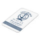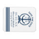 Lägg märke till bröllop i stil med det nautiska spara datum magneter! Har ett båtankare och repmonogram och vågrät rand. Anpassa med anpassningsbarna. Färg: marinblått, lätt grått och vitt.