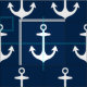 Nautical Navy Blue and White Anchors Mönster Tyg