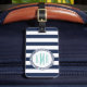 Nautical Navy Rand & Aqua Monogram Bagagebricka