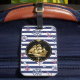 En blå och vit Rand-resetagg med gammal segelcentral för Frakt