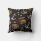 Bring the spirit of the high seas into your space with this stylish pirate pattern throw pillow. Featuring a seamless design of pirate skulls, anchors, ship wheels, treasure chests, and gold coins, this bold nautical pattern blends dark elegance with adventurous energy.