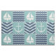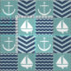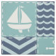 En vit sjörövare som inspirerats mönster av stormiga turkoskvadroner, dekorerade med en vit segelbåt och ankare, och djupa blå fyrkanter, accentuerade med blekblå kungar och vinkara, accentueras av vit sömnad för att skapa en klassisk nautisk känsla.