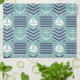 En vit sjörövare som inspirerats mönster av stormiga turkoskvadroner, dekorerade med en vit segelbåt och ankare, och djupa blå fyrkanter, accentuerade med blekblå kungar och vinkara, accentueras av vit sömnad för att skapa en klassisk nautisk känsla.