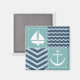 En vit sjörövare som inspirerats mönster av stormiga turkoskvadroner, dekorerade med en vit segelbåt och ankare, och djupa blå fyrkanter, accentuerade med blekblå kungar och vinkara, accentueras av vit sömnad för att skapa en klassisk nautisk känsla.