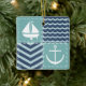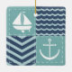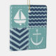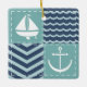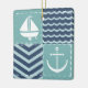 En vit sjörövare som inspirerats mönster av stormiga turkoskvadroner, dekorerade med en vit segelbåt och ankare, och djupa blå fyrkanter, accentuerade med blekblå kungar och vinkara, accentueras av vit sömnad för att skapa en klassisk nautisk känsla.