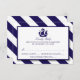 De här OSA kort är perfekt för alla par som planerar ett romantiskt giftermål vid havet. Utformningen har en vit marin frakt med blått motiv på en marin och vit strimlad bakgrund. Den enkla utformningen kan vara personligen till kostym för din speciella händelse och kommer att vara perfektens svarskort för alla nautiska strandteman party, inklusive: möhippor, förlovningar, möhippor, födelsedagsfester och mycket, mycket mer.