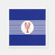 Nautiskt tema med röd hummer i centrum med blått och vitt rand; bakgrund är marin blå