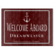 Vackra och elegant välkomna skärbord för din jakt eller båt. Monogrammat med namn på ditt fartyg. Nautiskt tema med rep gräns, ankare och typografi. Välkommen ombord med din båt namn och plats. Perfekt för underhållning.