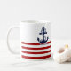 Snyggtens dekorativa mugg har ett nautiskt rött och vitt rand med en blå ankarvektor på en vit bakgrund som du enkelt kan ändra färg. Matchande objekt som finns i vår butik.www.zazzle.com/giftsforanyoccasions