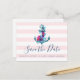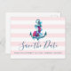 Nautical Spara Datum bröllopsannons brevkort design med ankare och blommor på en rosa randig bakgrund.