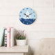 Dark blue and light numbers are thoughtfully placed to stay visible against the sea waves, while the clean minimalist design makes this clock a beautiful accent for a beach house, living room, office, or nautical themed room.