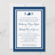 Nautical marinblå bröllopsinbjudan med, klassiskt monogram och modern blå kant och ränder. Anpassa med din egen text och färger.