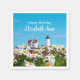 Nautisk sommarfödelsedag Nubble Maine Lighthouse Napkins. Fin makrofotografi med en trädgård med Montauk-daisy och monarch-fjärilar på Nubble Lighthouse. Detta ytliga djup på naturfotografiet i fält fångar en fjäril kraftigt med en mjuk inriktning på det avlägsna fyr som ligger längst bort. Anpassa till evenemanget genom att redigera Grattis på födelsedagen-texten och det handskrivna Namn. Perfekt till Gardener som kärlek Coastal Maine.