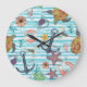 Nautical Turtles Seagul Starfish Mönster Stor Klocka