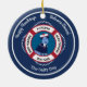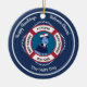 Fira helgdagarna med din seglingspartner i hund och bästa vän med denna vackra julprydnad med en röd och vit livskonserver, sjömännens rep och en sjöblå hund på marinblå bakgrund. Den här designen är modern och minimalistisk, och den kommer att göra en roligt till din helgdag-dekoration. Anpassa texten "lycklig howlidays" och "Välkommen ombord" och de fyra textområdena på livkonserveringsmedlet så att de passar dina behov.