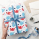Denna söta papper är mångsidig och kan användas för ge gåvor eller konstverk och hantverksprojekt. Utformningen har blå valar och röda krabbor på vit bakgrund. Det här är perfekt för födelsedagar.