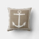 Klassiskt nautiska stil dekorativ kudde med en rustik syndabockbakgrund, vit strimlad ram och vit frakt som ankarsilhuett.