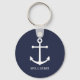 Nautical White Anchor och Custom Name på marinblåt Nyckelring